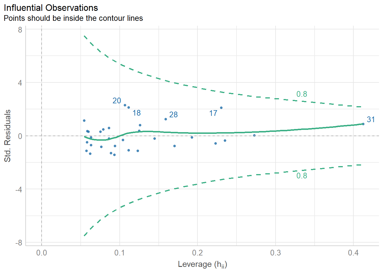 Multiple linear regression is a valuable tool for analyzing the relationship between a dependent variable and multiple independent variables. By checking model assumptions and interpreting the results accurately, we can make informed decisions based on the model’s findings. This blog post demonstrated how to perform multiple linear regression in R, interpret the results, and ensure the validity of the analysis through various diagnostic checks.