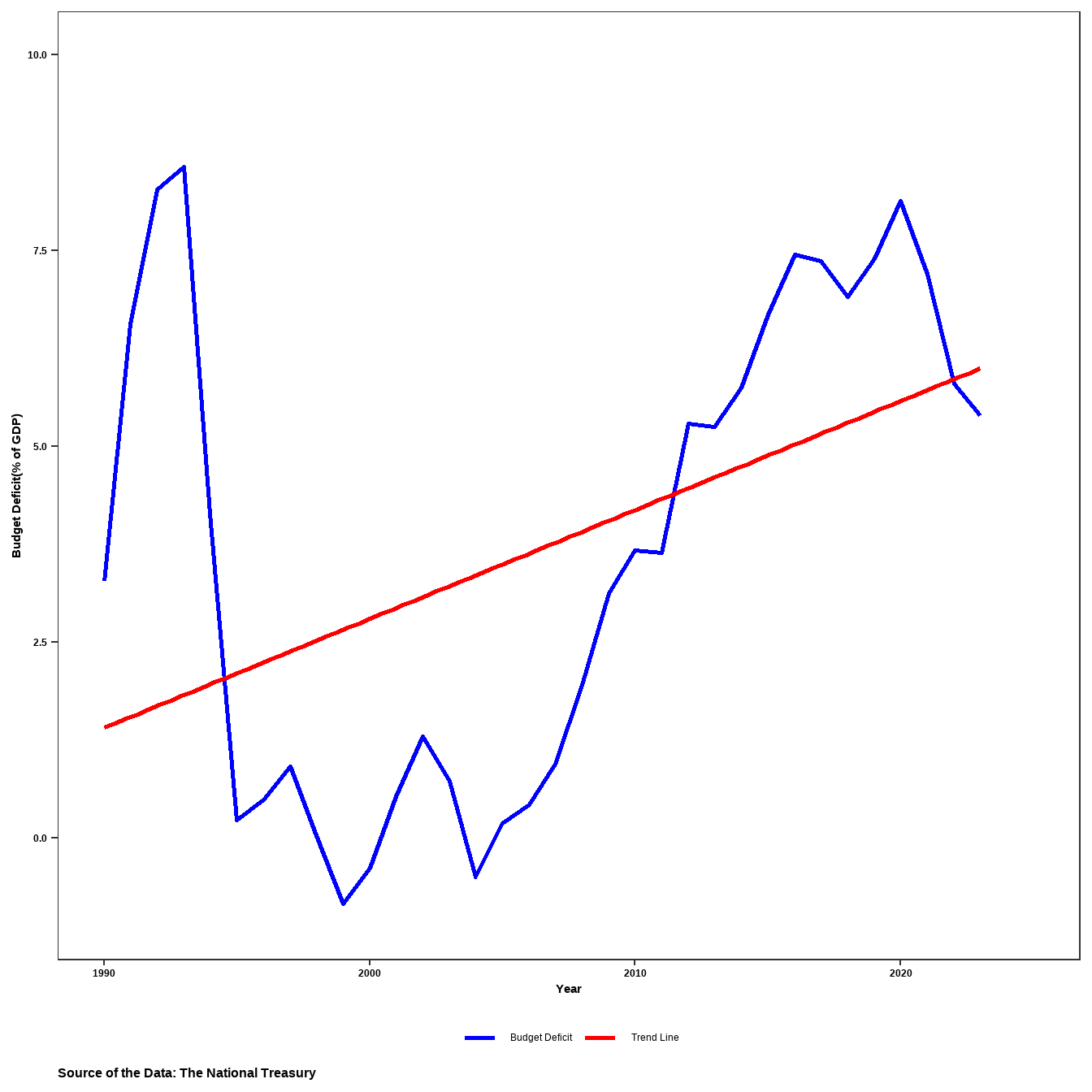 scale_color_manual(values = c("Budget Deficit" = "blue", "Trend Line" = "red"),