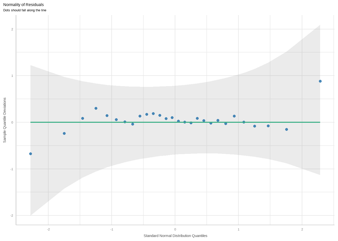 All assumptions of the regression analysis have been satisfactorily met, ensuring the robustness of the model’s findings. The fulfillment of these assumptions, including but not limited to linearity, independence of errors, homoscedasticity (constant variance of errors), and absence of multicollinearity among predictors, supports the validity of the regression results. These conditions enhance confidence in the relationships identified between GDP growth and its predictors-real interest rates, inflation, exchange rates, and the log of deficit. Consequently, the interpretations drawn from the regression coefficients are more reliable, providing valuable insights into the factors influencing economic growth in the context of Kenya.