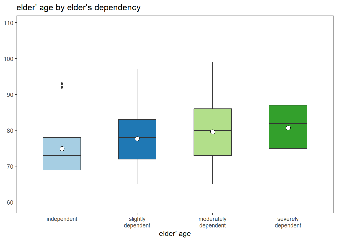 plot_grpfrq(efc$e17age, efc$e42dep, type = "box")