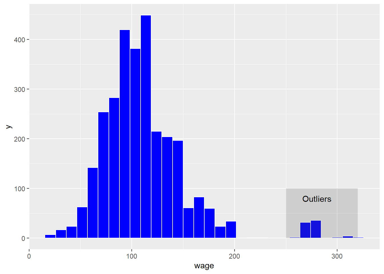 annotate("text", x = 280, y = 80, label = "Outliers")