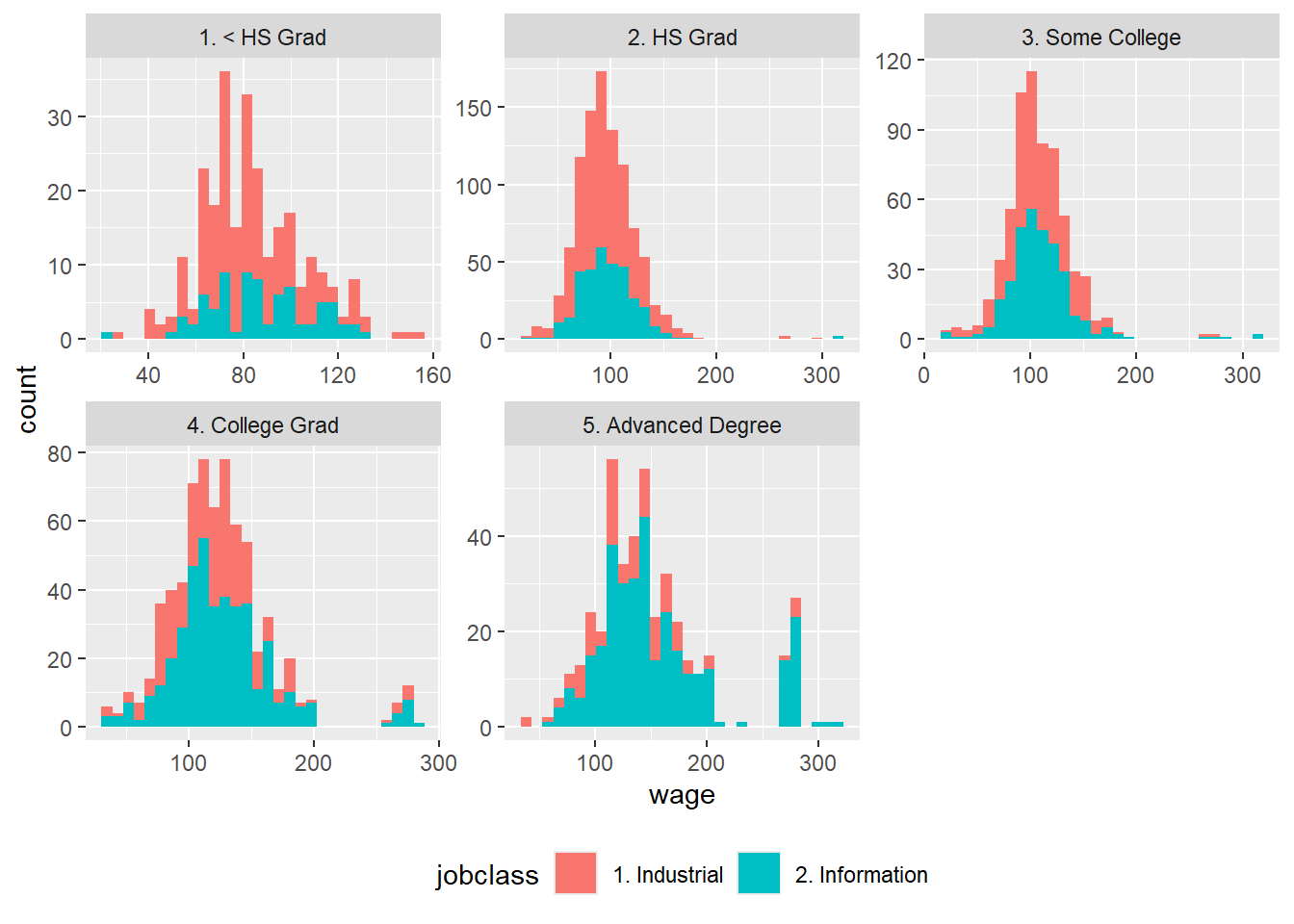 ggplot(aes(wage,fill=jobclass
