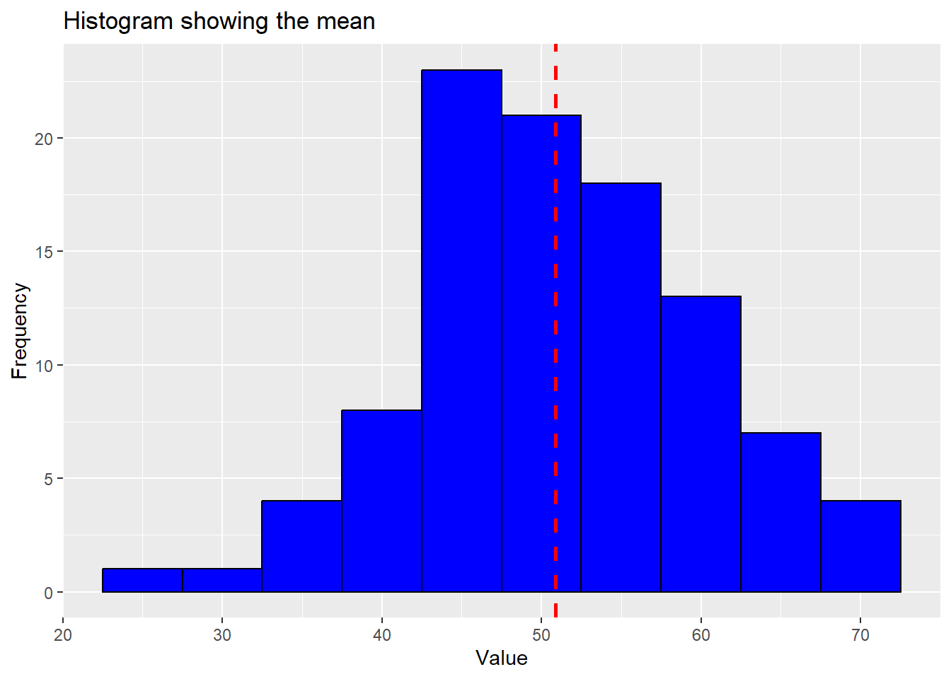 labs(title = "Histogram showing the mean",